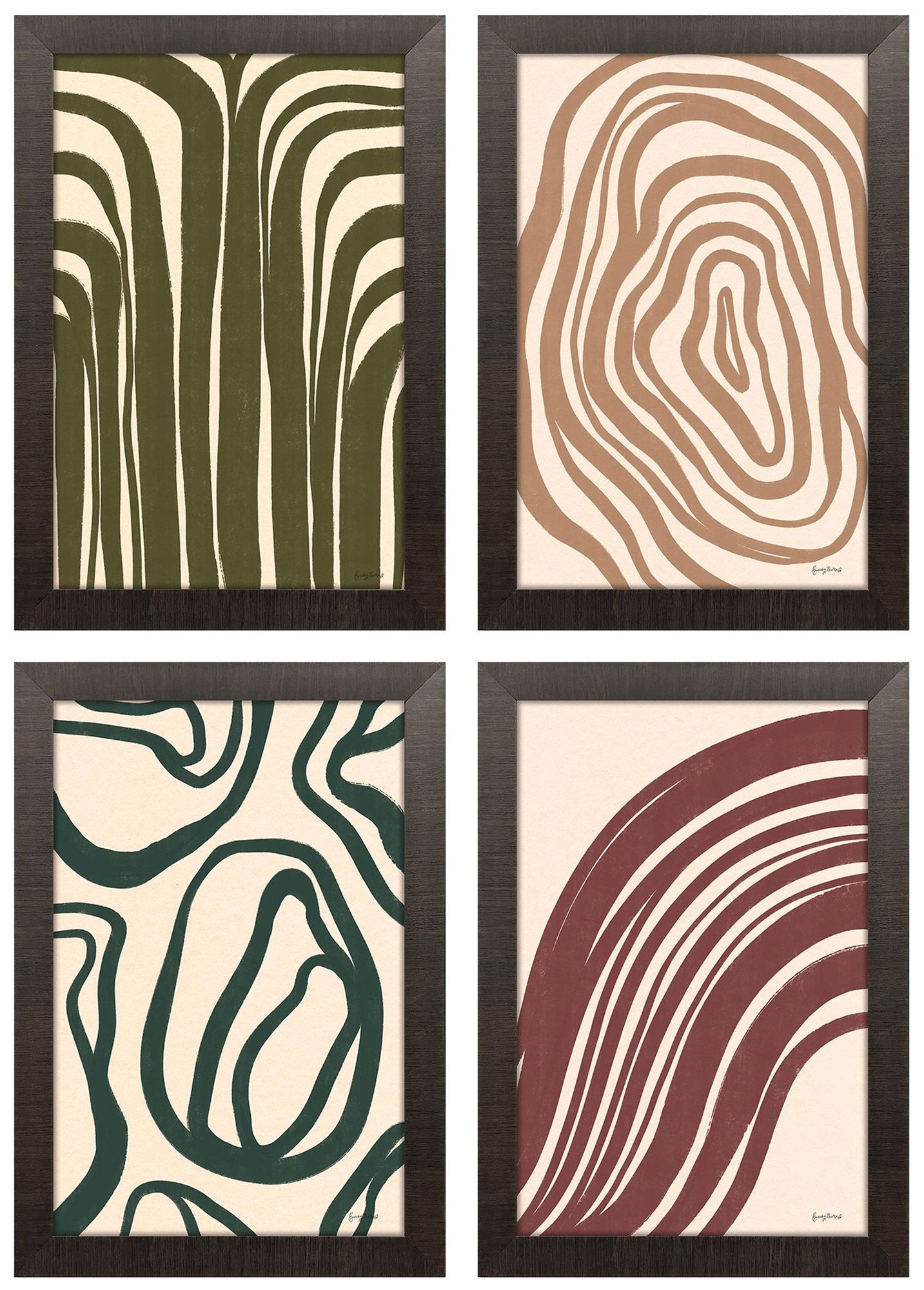 Organic Abstracts 12"W x 17"H Non-Glass Framed Wall Art Set of 4