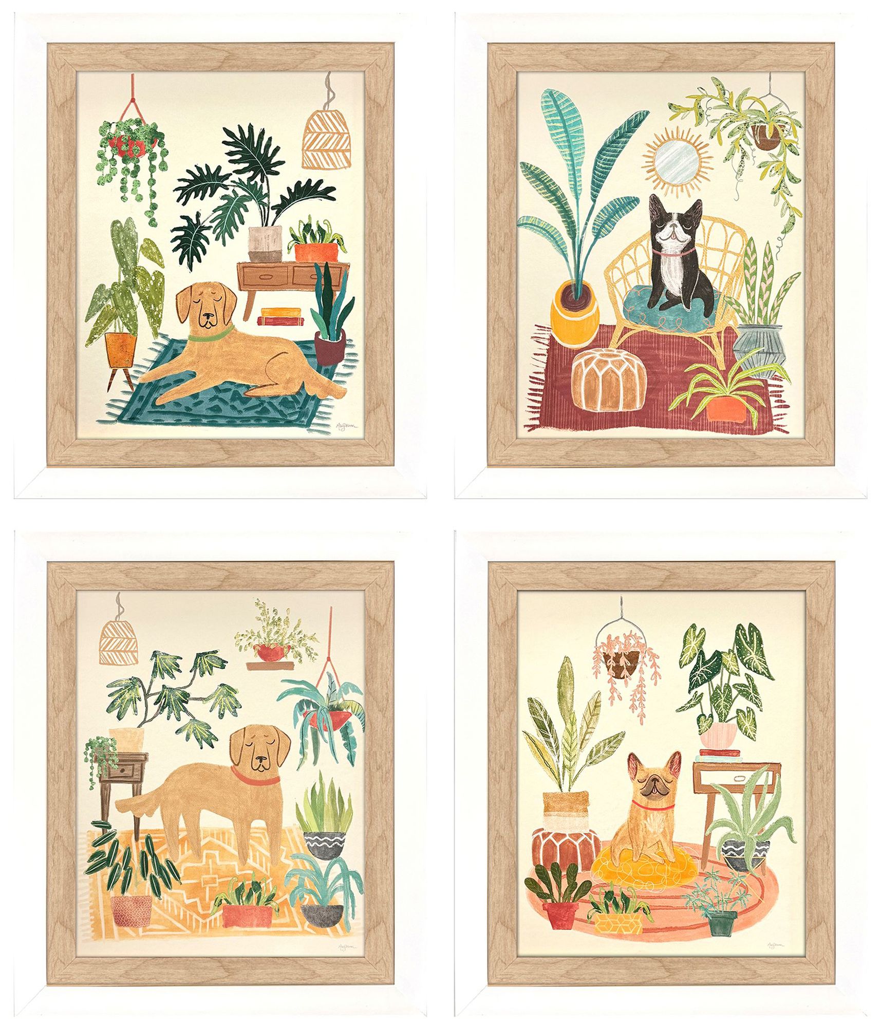 Urban Jungle Dogs 11"W x 13"H Framed Wall Art Set of 4