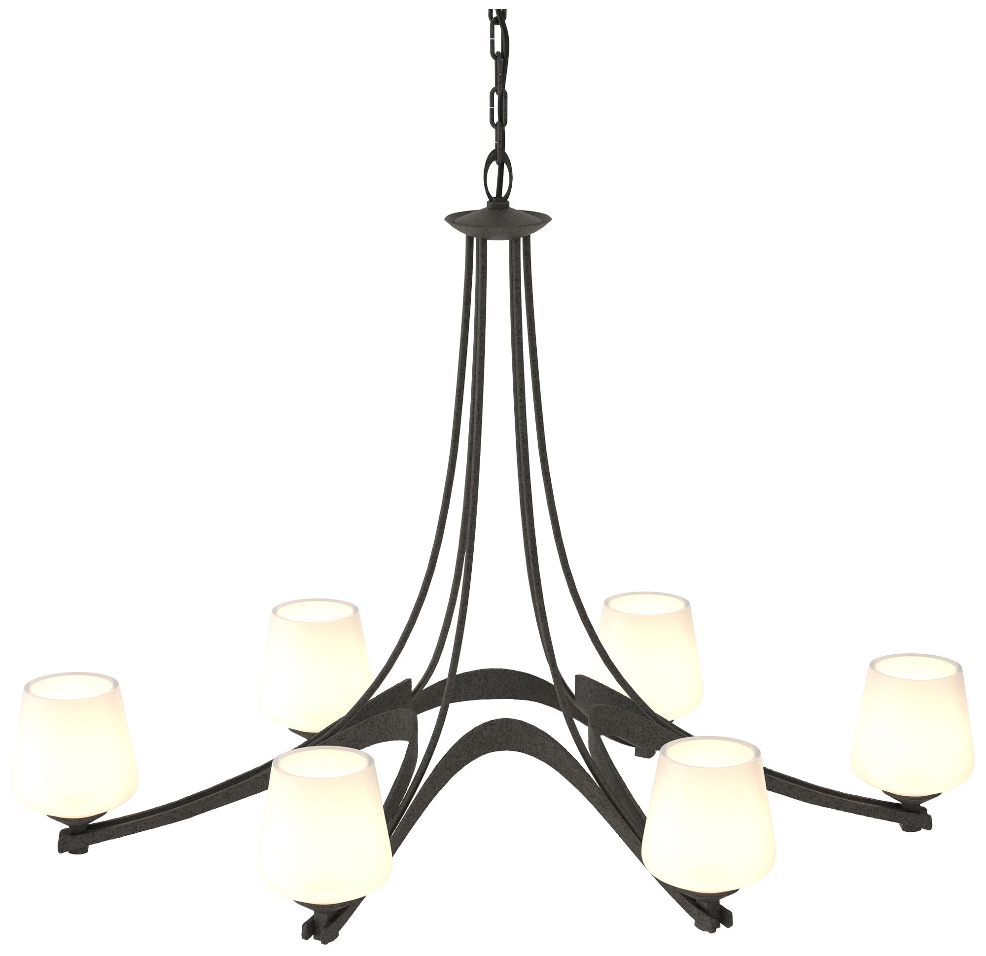 Oval Ribbon 38.5" Wide 6 Arm Natural Iron Chandelier With Opal Glass