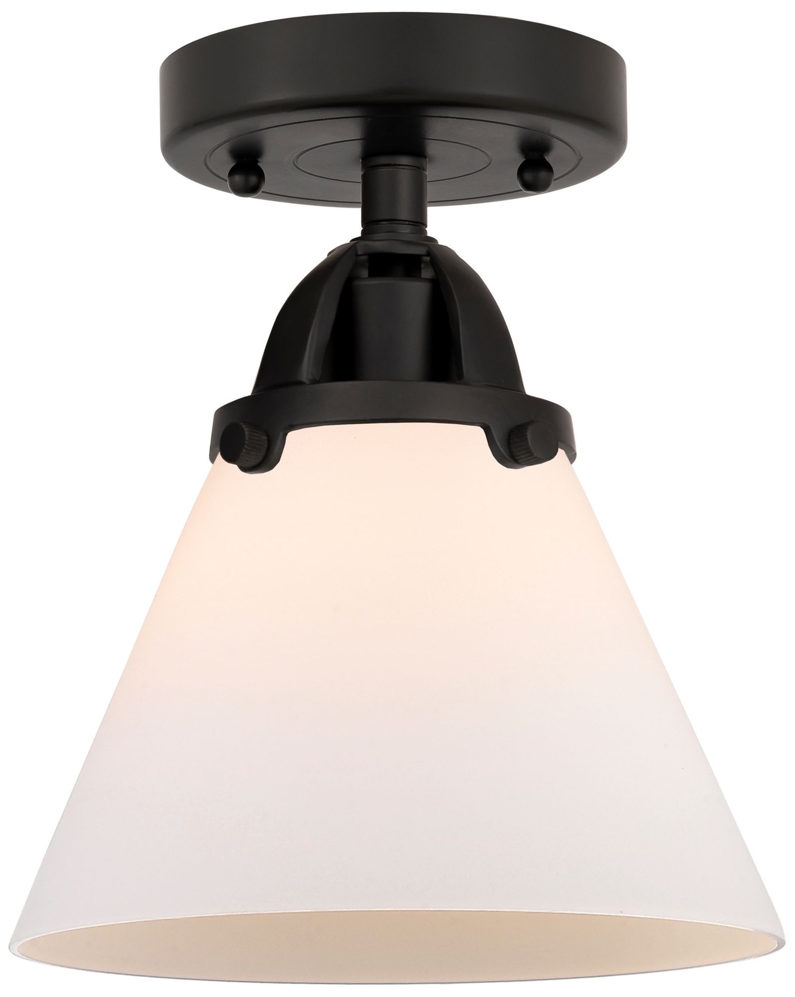 Nouveau 2 Cone 8" Semi-Flush Mount - Matte Black - Matte White Shade