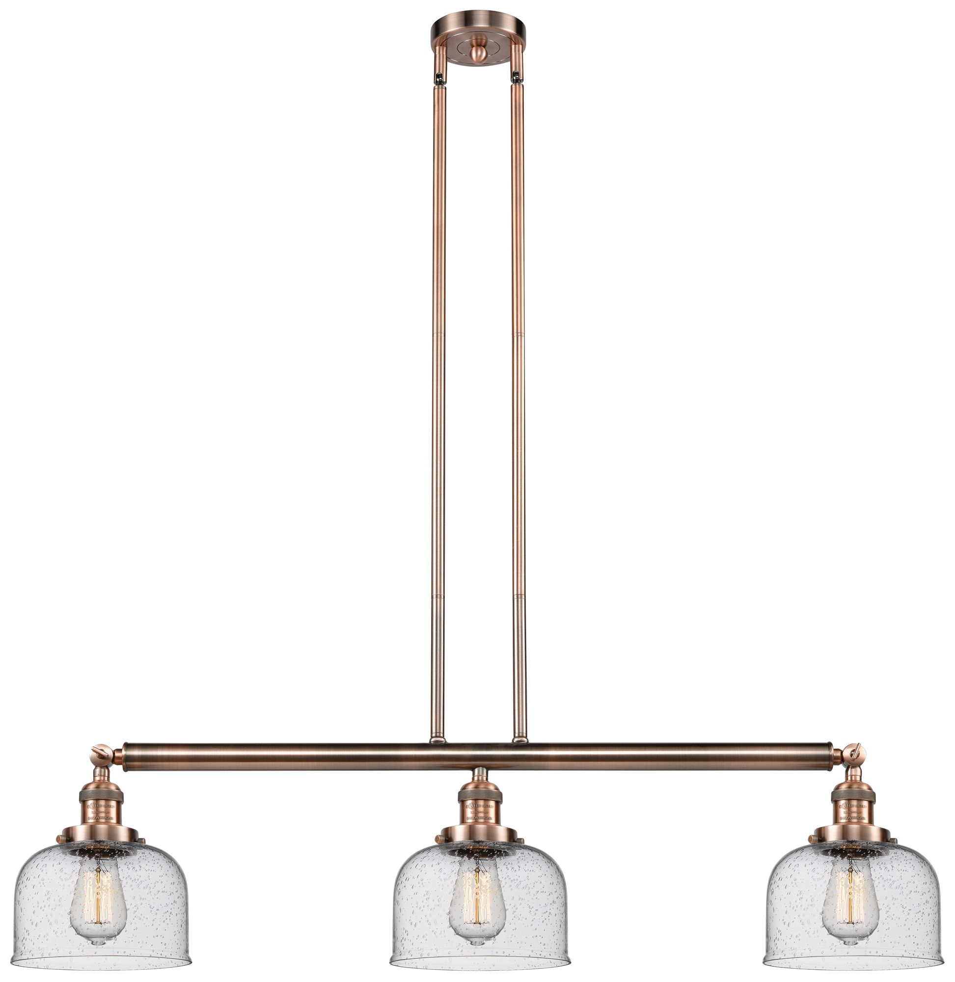 Bell 41" 3-Light Antique Copper Stem Hung Island Light w/ Seedy Shade
