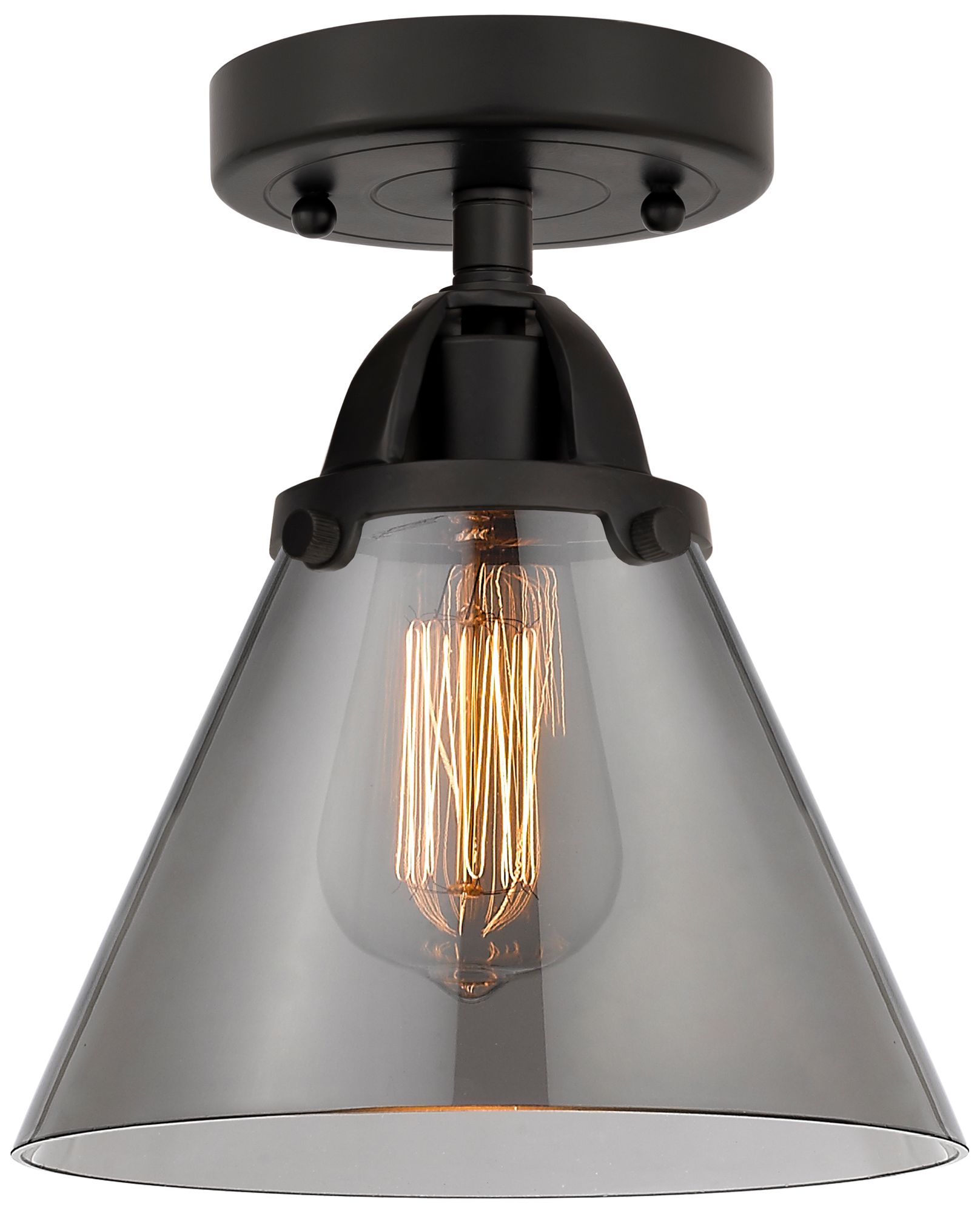 Nouveau 2 Cone 8" Semi-Flush Mount - Matte Black - Plated Smoke Shade