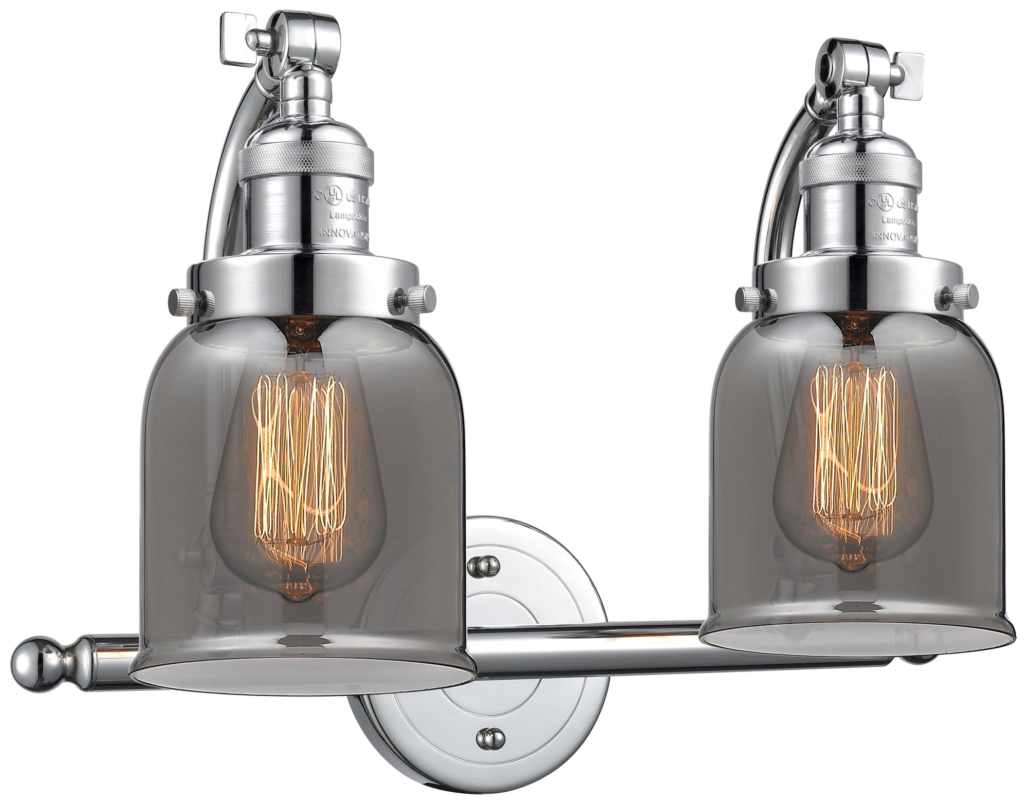 Bell 18"W 2 Light Polished Chrome Bath Vanity Light w/ Plated Smoke Sh