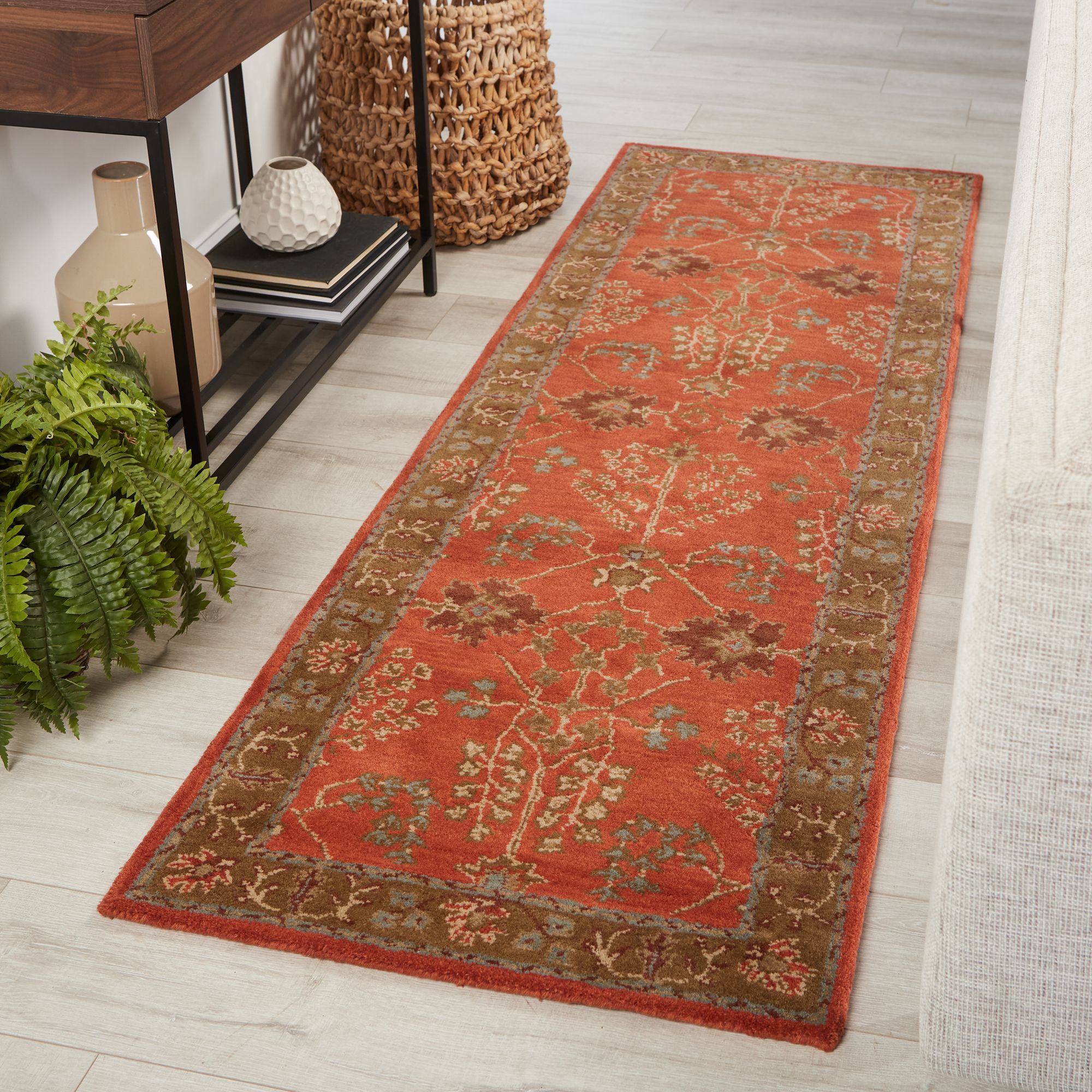 Poeme Chambery PM51 2'6"x8' Orange and Brown Runner Area Rug