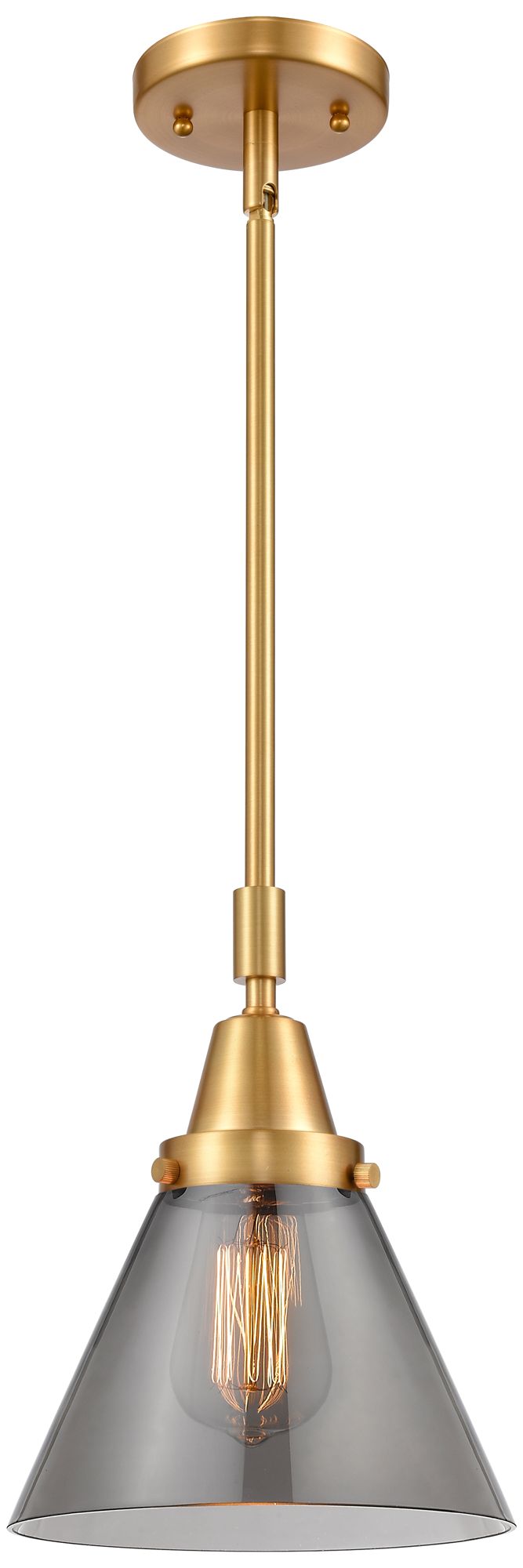 Caden Cone 8" Wide Satin Gold Stem Hung Mini Pendant w/ Plated Smoke S