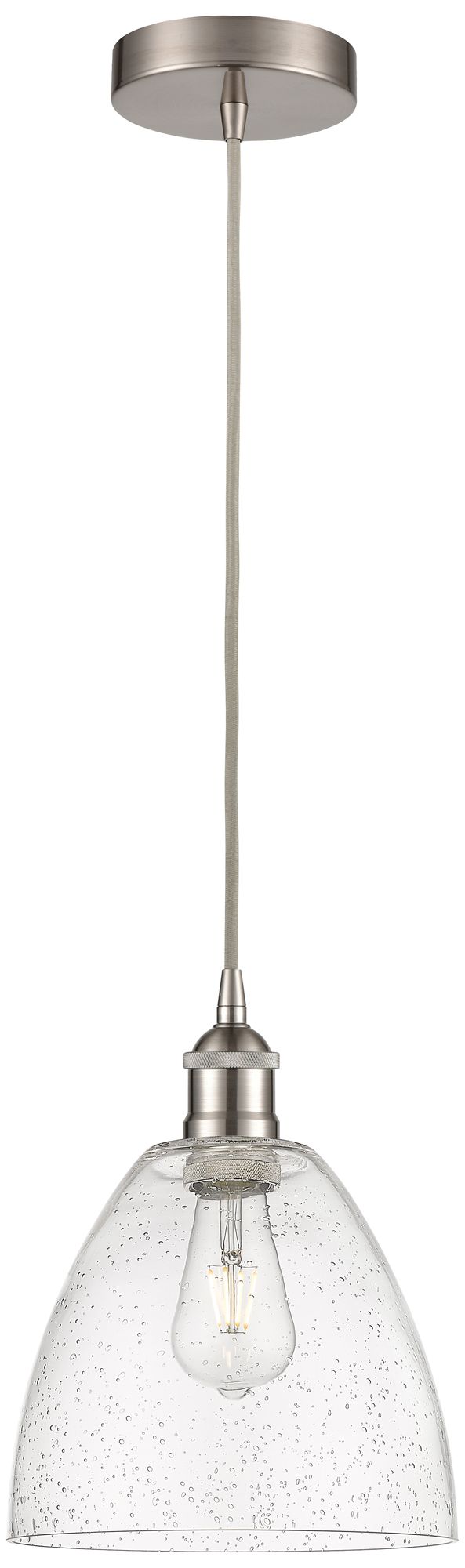 Edison Dome 9" Brushed Satin Nickel Cord Hung Mini Pendant w/ Seedy Sh
