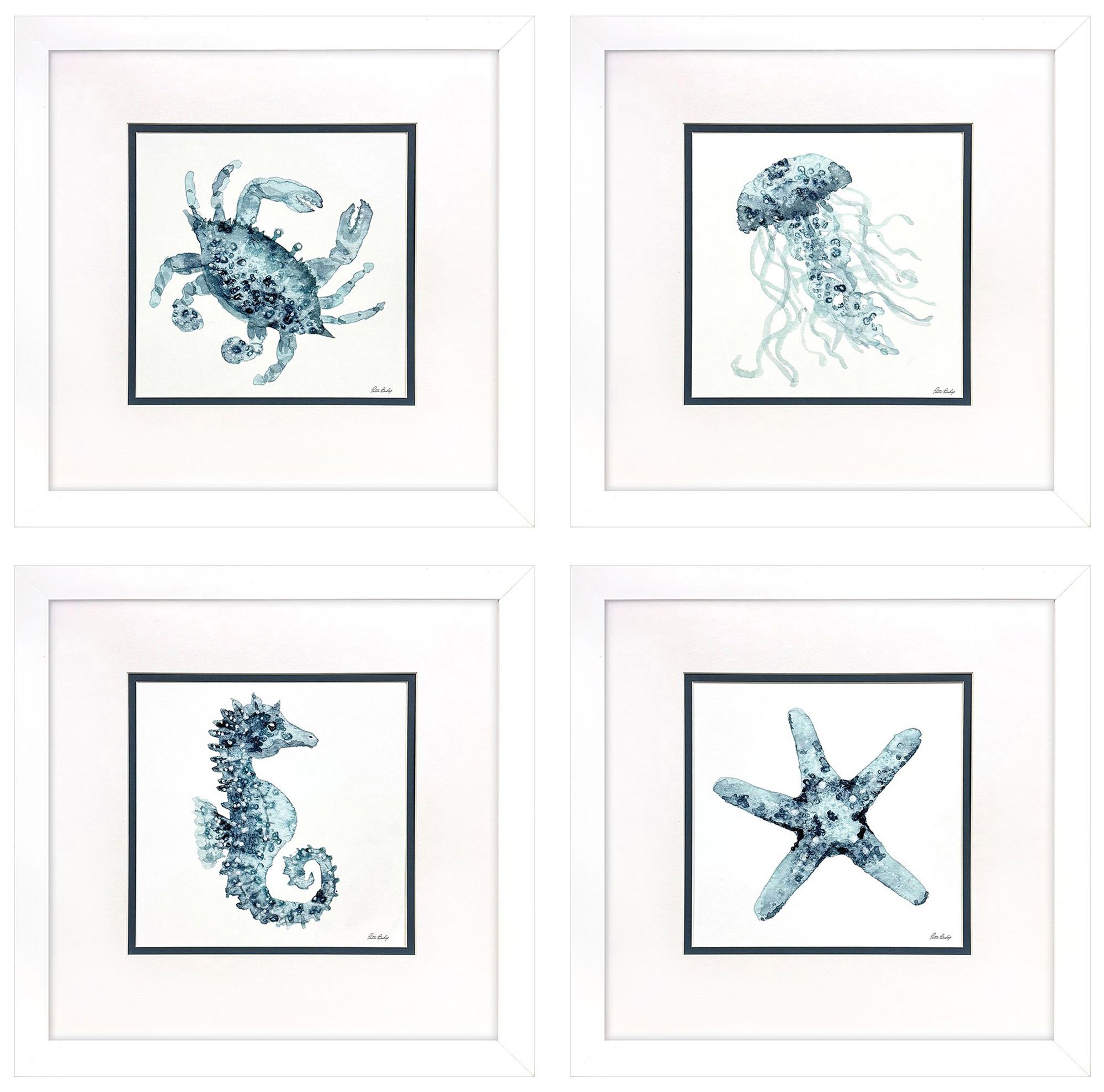 Water Sea Creatures 23"W x 23"H Framed Wall Art Set of 4