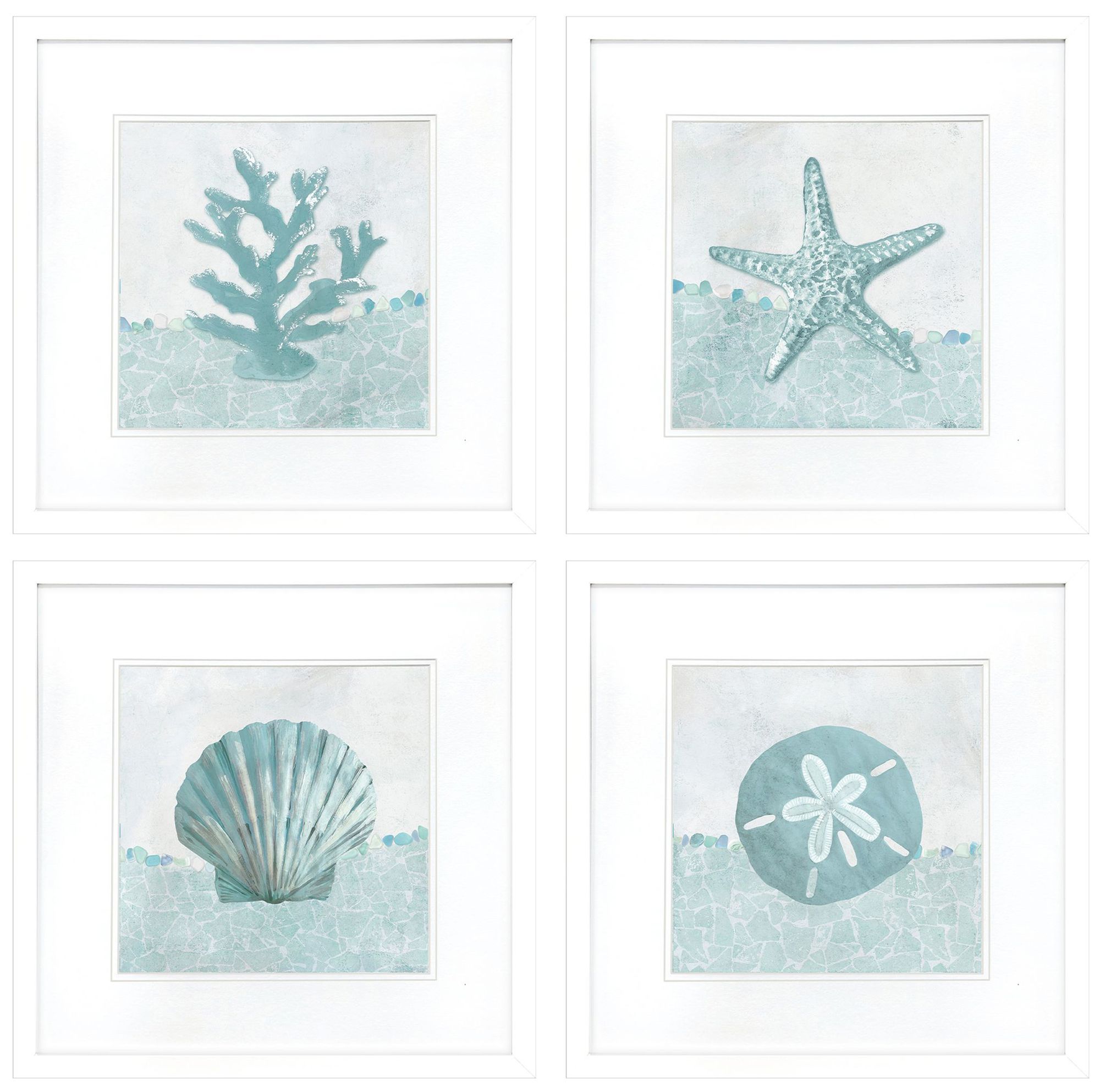 Coastal Mosaic 19"W x 19"H Framed Wall Art Set of 4