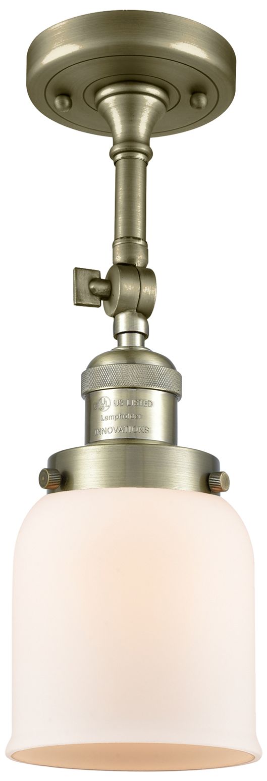 Franklin Restoration Bell 5" Antique Brass Semi Flush Mount w/ White S
