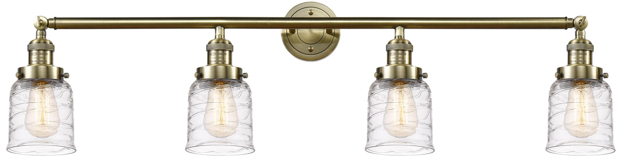 Bell 4 Light 42" Bath Light - Antique Brass - Deco Swirl Shade