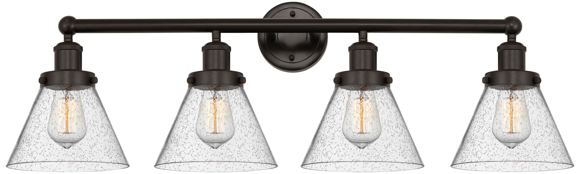 Edison Large Cone 34" 4-Light Oil Rubbed Bronze Bath Light w/ Seedy Sh