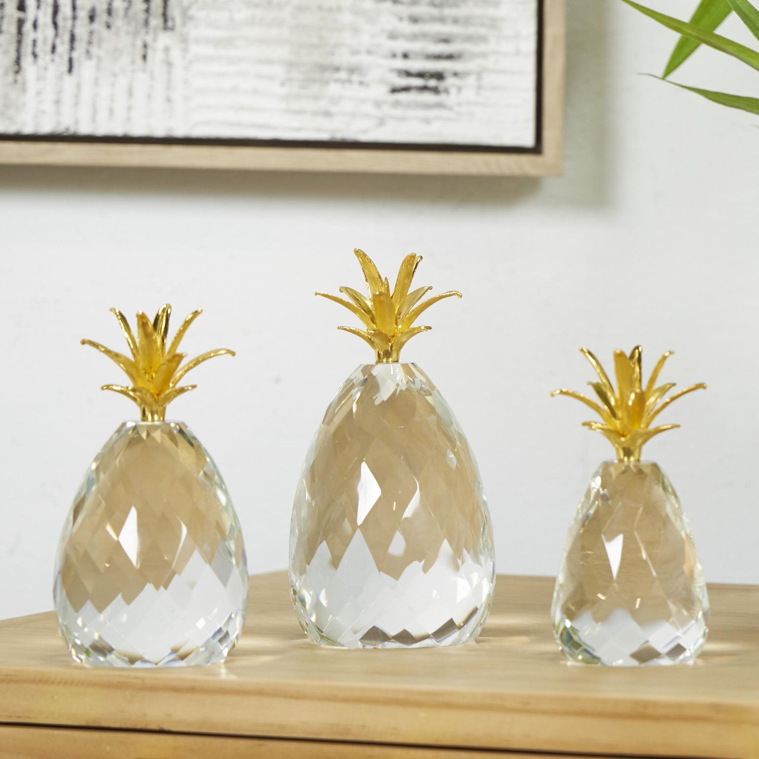 Clear Crystal Contemporary Sculpture, S/3 7", 7", 5"H
