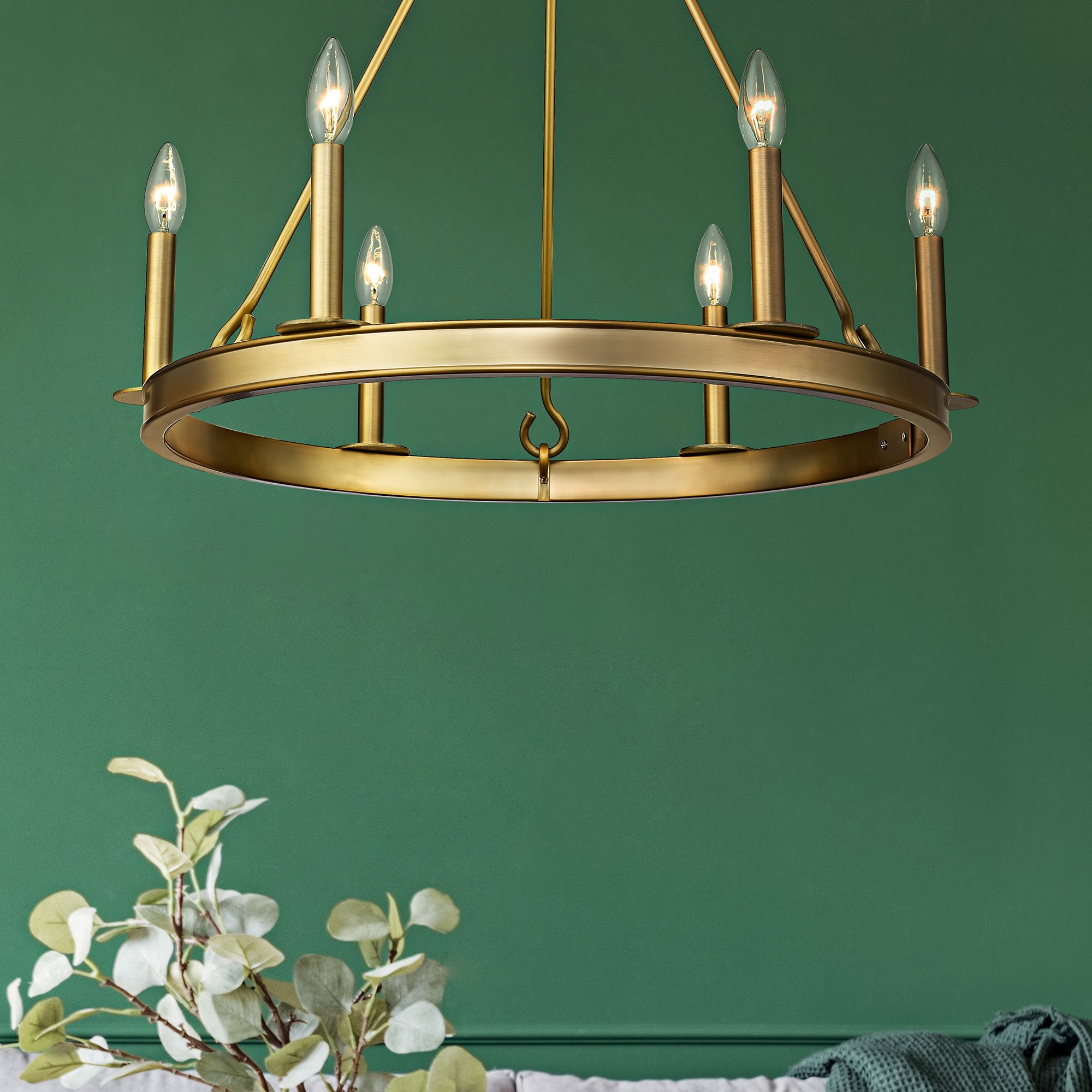 Barclay 25" Wide Olde Brass 6-Light Wagon Wheel Chandelier