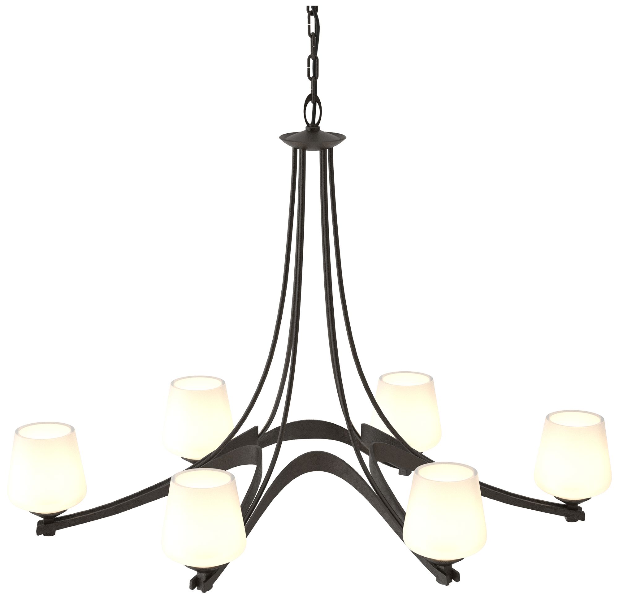 Oval Ribbon 38.5" Wide 6 Arm Oil Rubbed Bronze Chandelier With Opal Gl