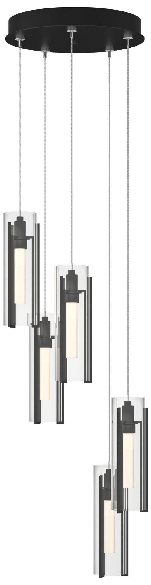 Exos Glass 5-Light 13.5" Wide Black Long Pendant With Clear Glass Shad