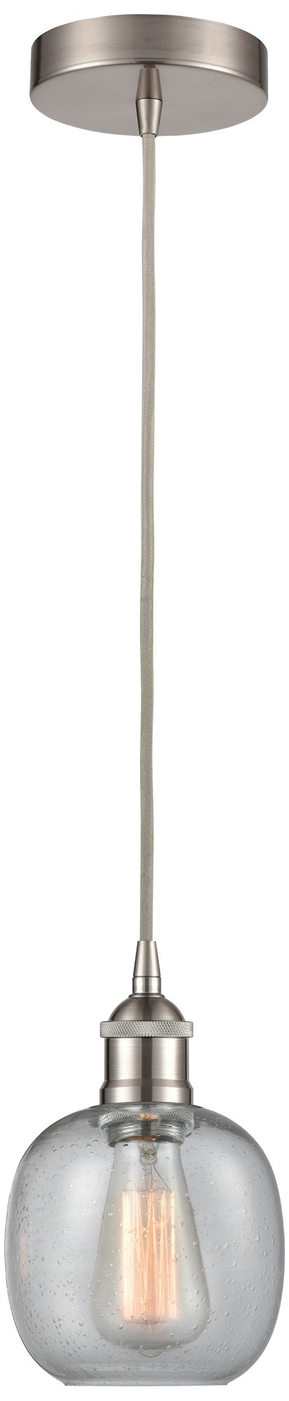 Edison Belfast 6" Brushed Satin Nickel Corded Mini Pendant w/ Seedy Sh