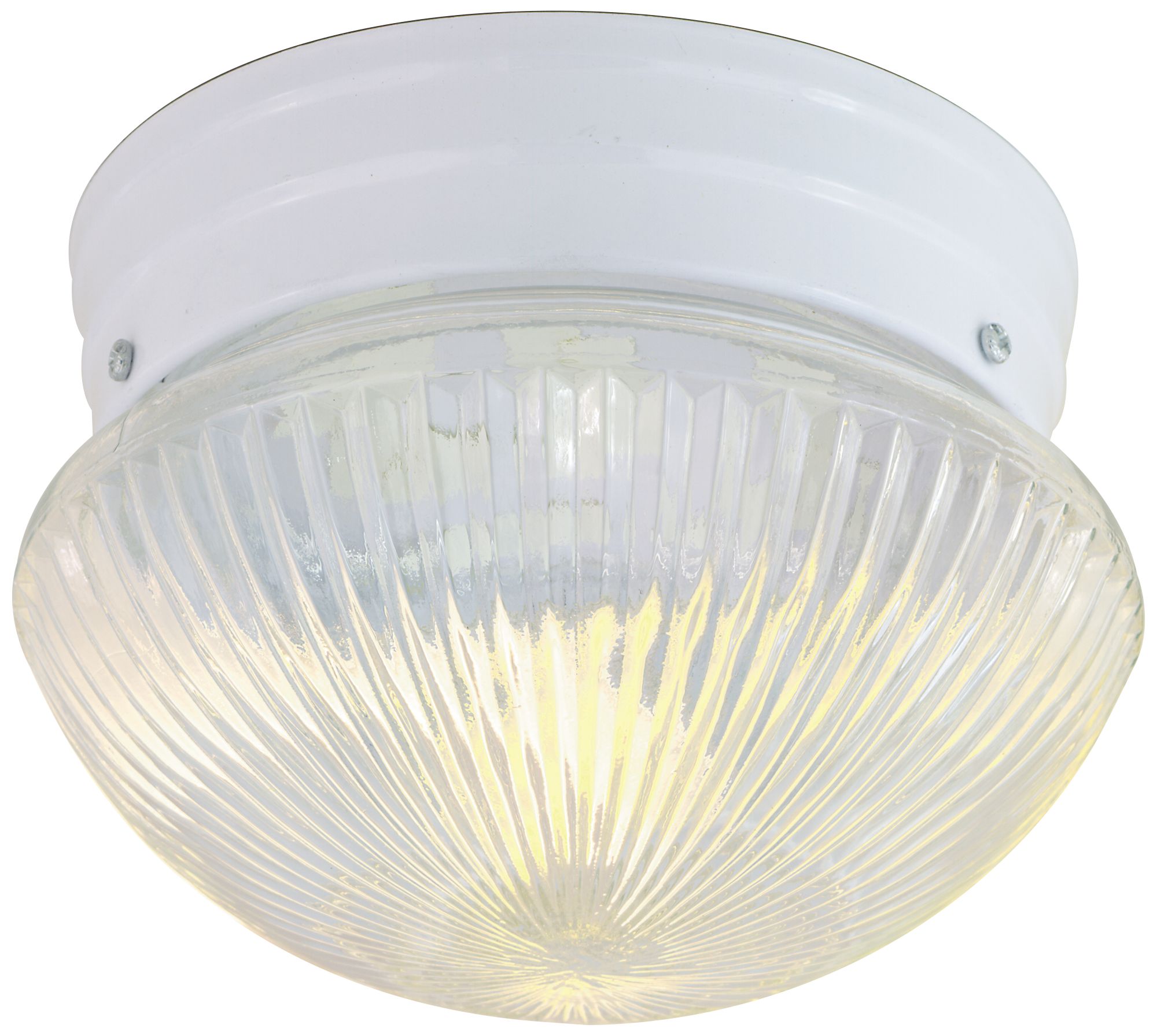 1 Light - 8" Flush with Clear Ribbed Glass - White Finish