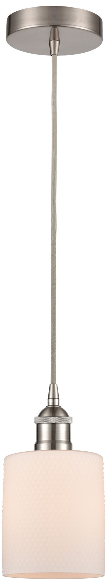 Edison Cobbleskill 5" Brushed Satin Nickel Mini Pendant w/ White Shade