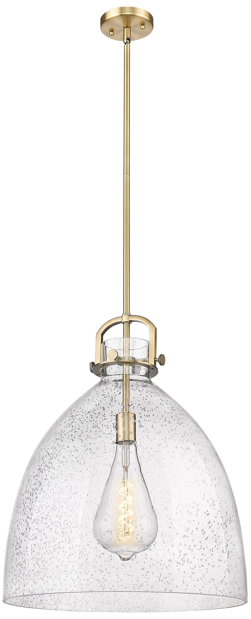 Newton Bell 18" Wide Stem Hung Brushed Brass Pendant With Seedy Shade