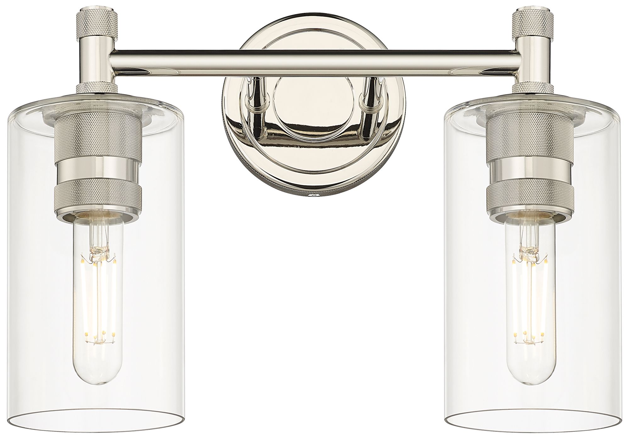 Crown Point 14" Wide 2 Light Polished Nickel Bath Light With Clear Sha
