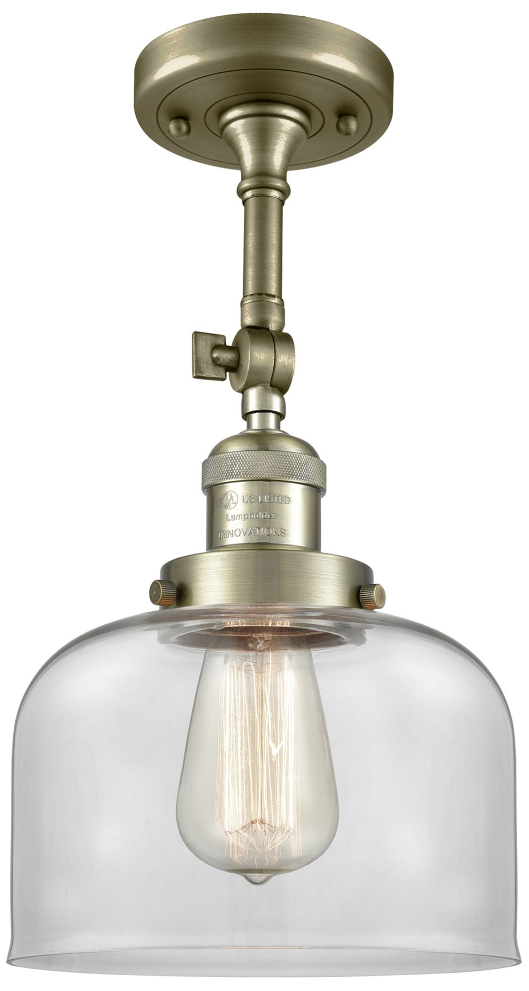 Franklin Restoration Bell 8" Antique Brass Semi Flush Mount w/ Clear S