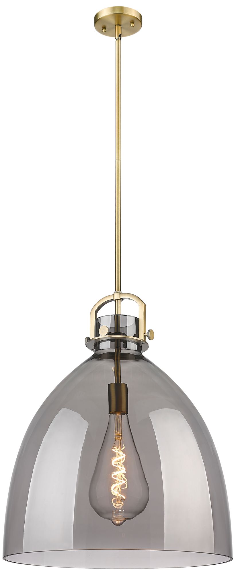 Newton Bell 18" Wide Stem Hung Brushed Brass Pendant With Smoke Shade