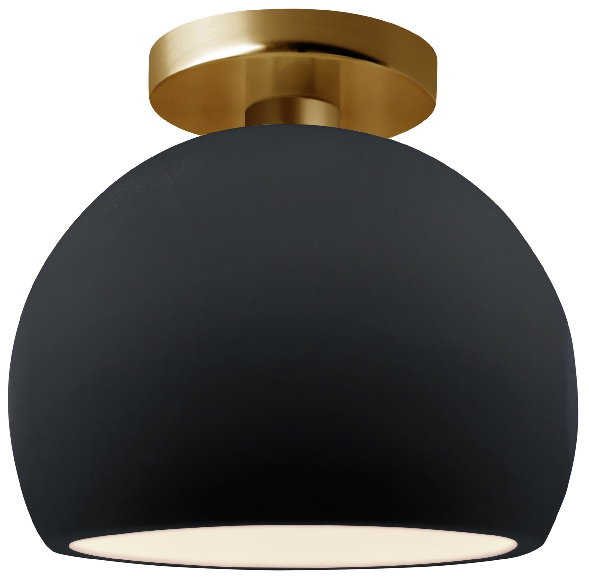 Radiance 7"W Gloss Black Frame Brushed Brass Small Globe LED Semi.Flus