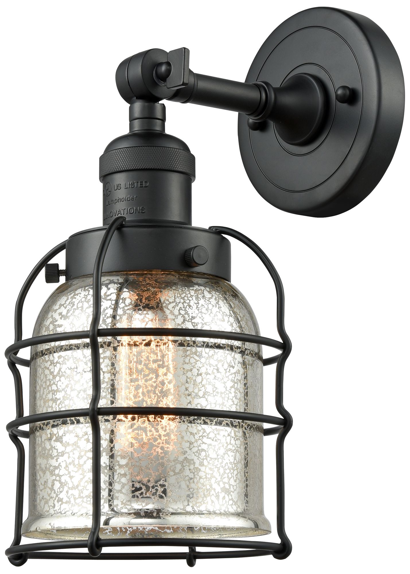 Franklin Restoration Bell Cage 6" Matte Black Sconce w/ Mercury Shade
