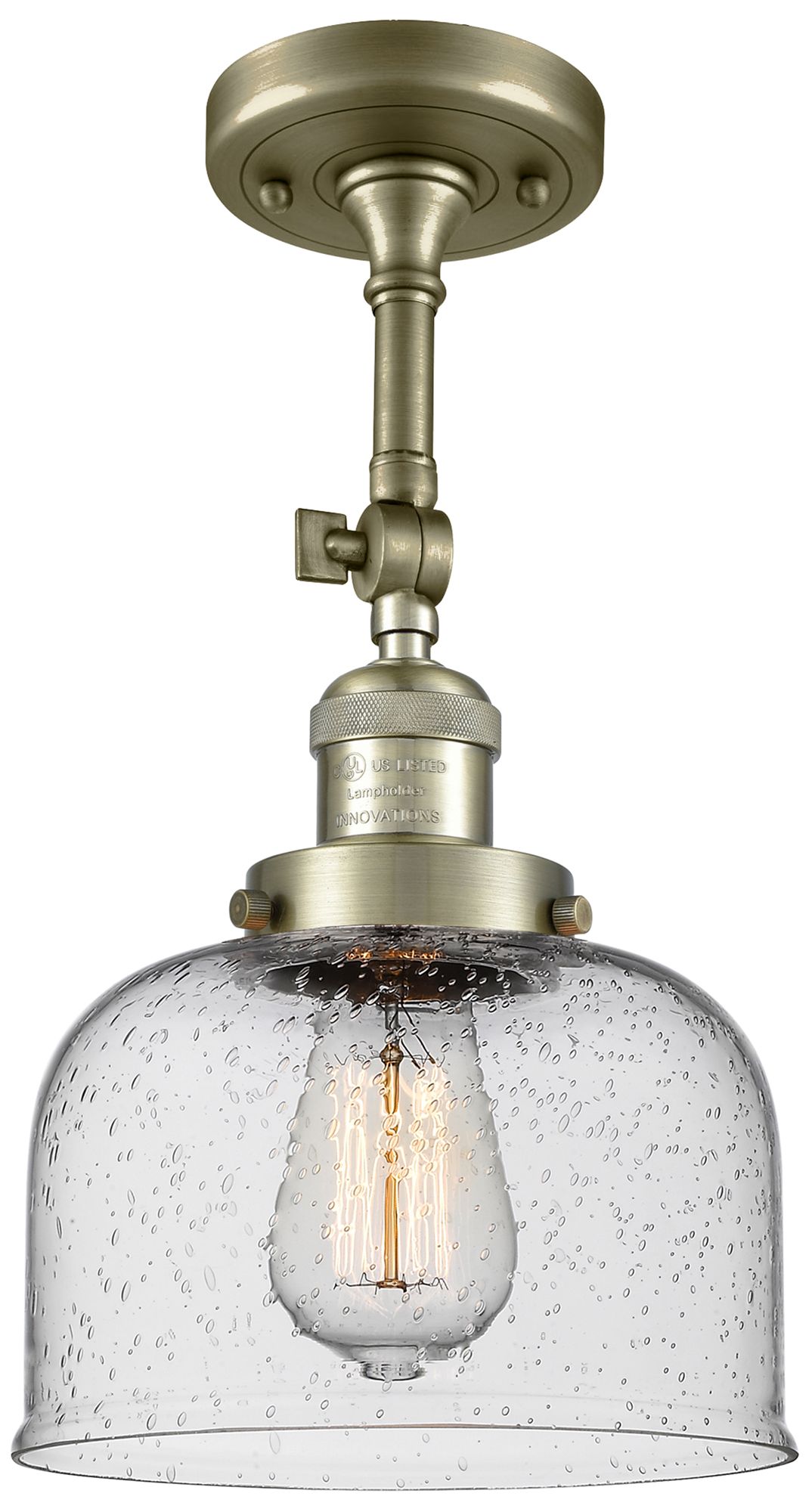 Franklin Restoration Bell 8" Antique Brass Semi Flush Mount w/ Seedy S