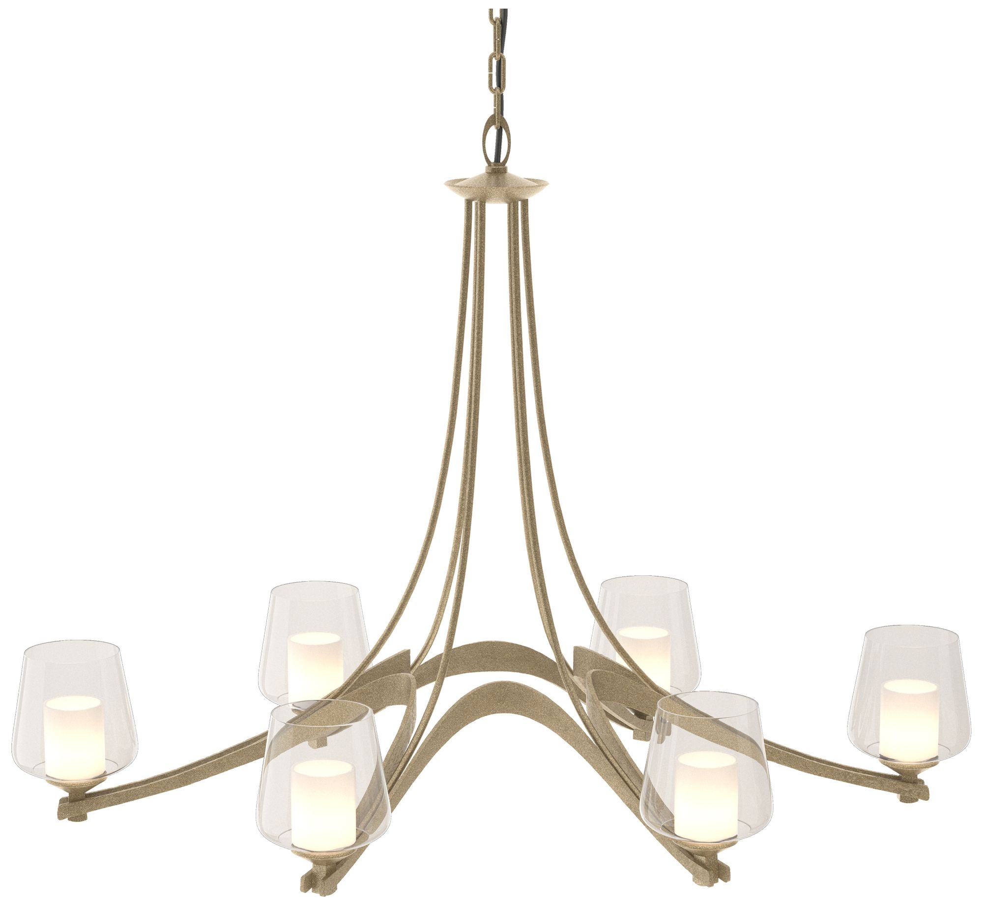 Oval Ribbon 38.5" Wide 6 Arm Soft Gold Chandelier With Opal and Clear