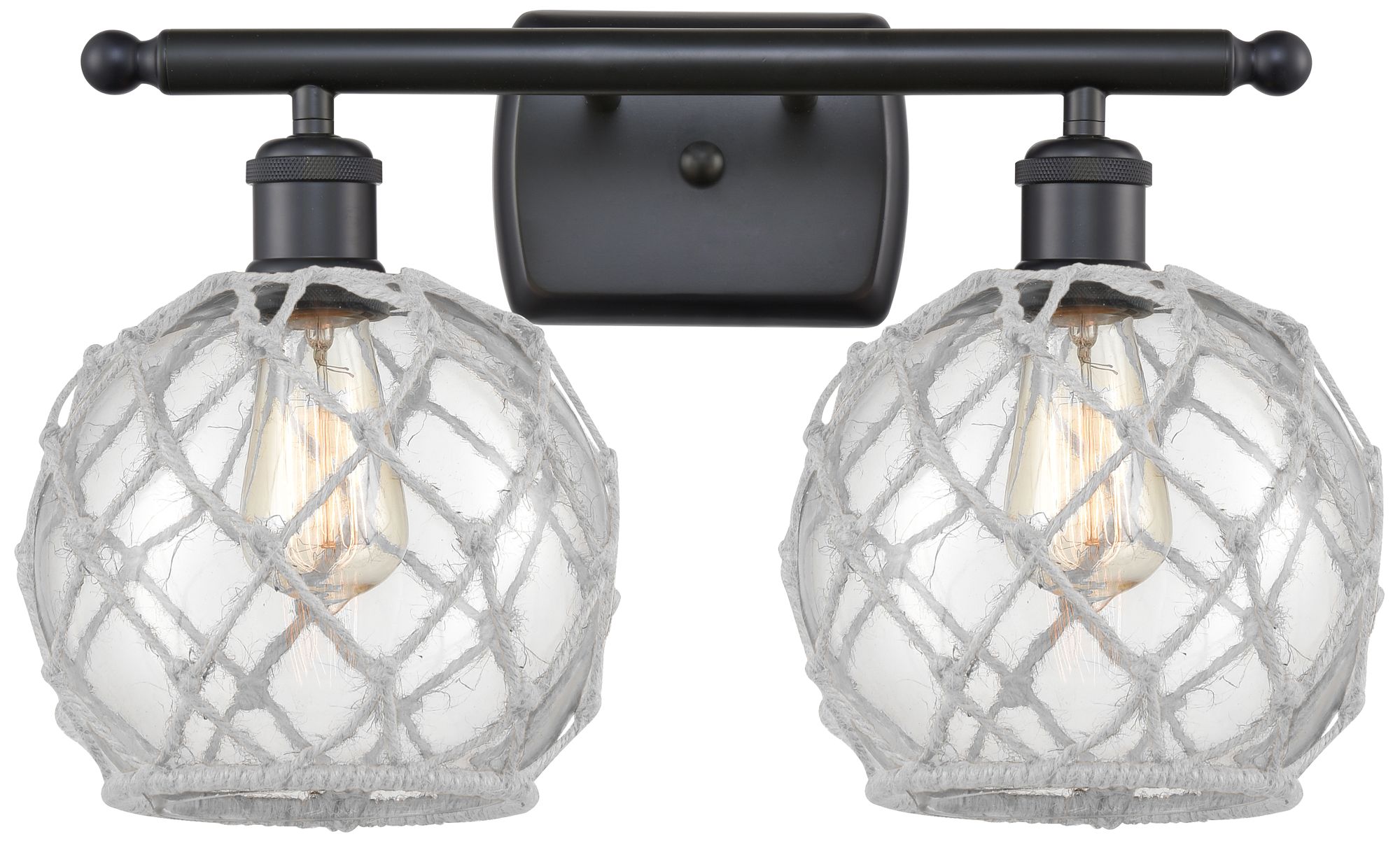 Farmhouse Rope 16"W 2 Light Matte Black Bath Light w/ Clear and White