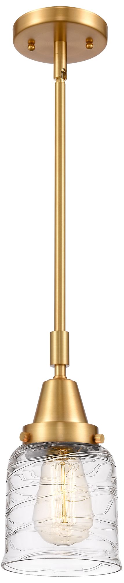 Caden Bell 5" Wide Satin Gold Stem Hung Mini Pendant w/ Deco Swirl Sha