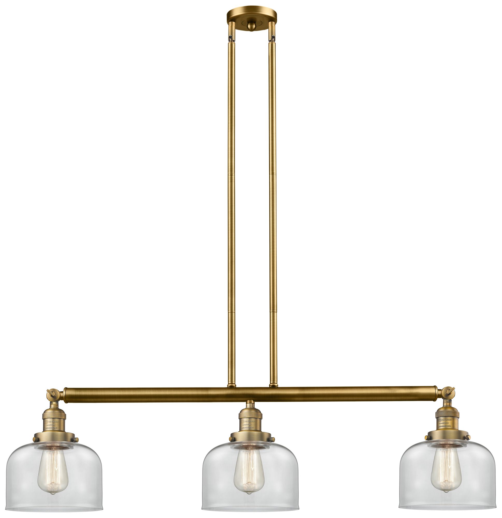 Bell 41" 3-Light Brushed Brass Stem Hung Island Light w/ Clear Shade
