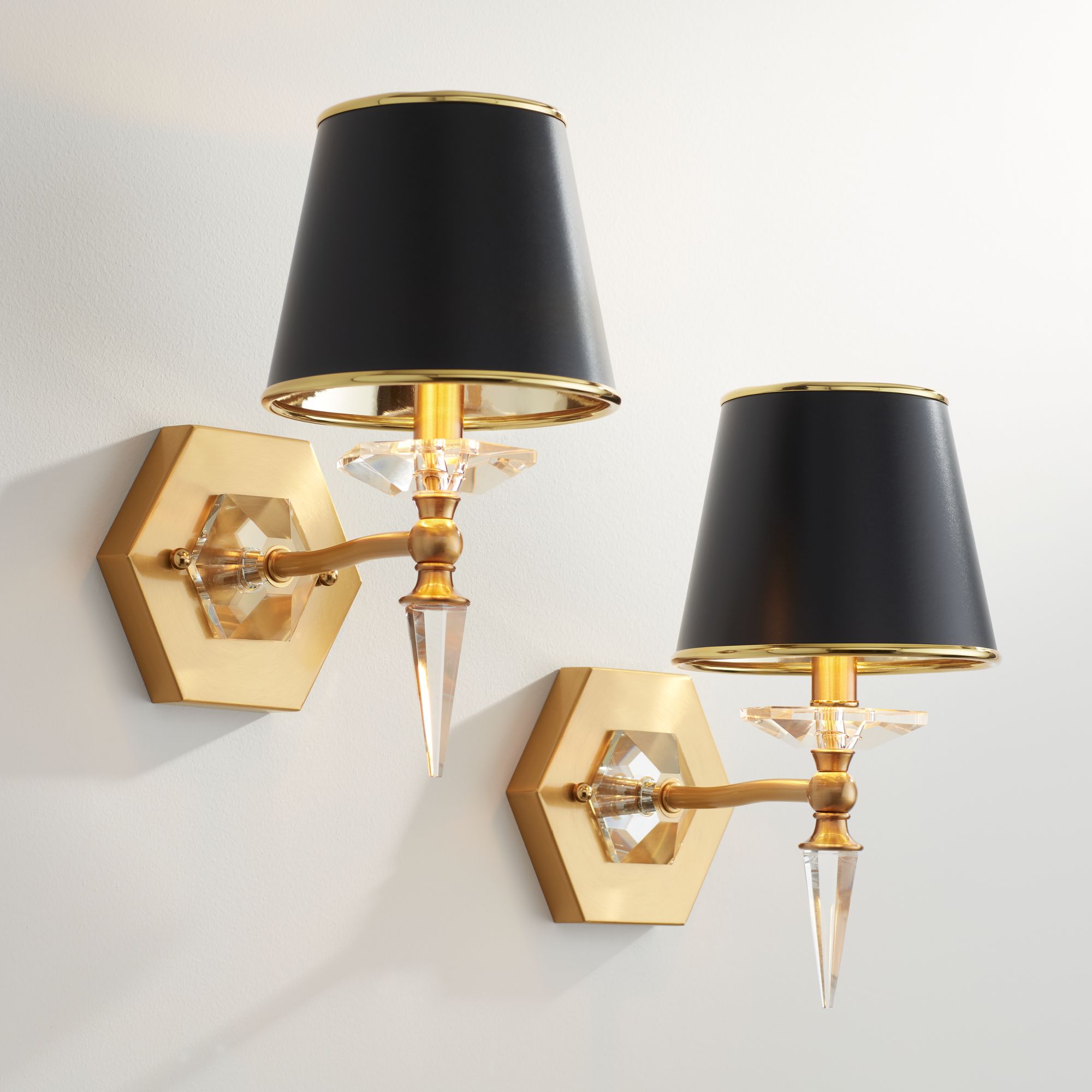 Manhattan 13" High Black and Brass Crystal Wall Sconce Set of 2
