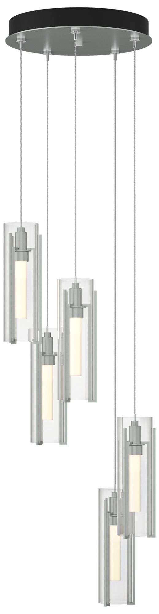 Exos Glass 5-Light 13.5"W Vintage Platinum Long Pendant w/ Clear Shade