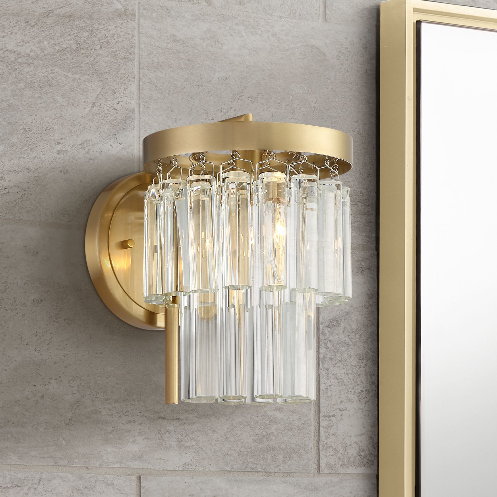 Stiffel Handry 10 1/2" High Clear Glass Antique Brass Wall Sconce