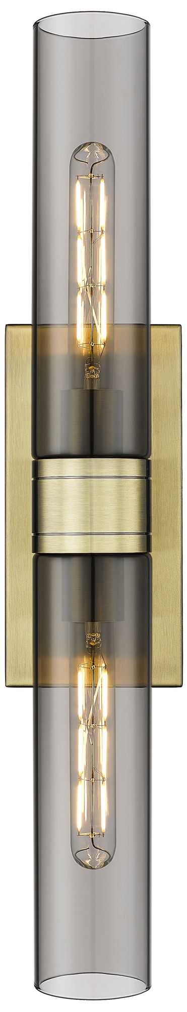 Ballston Urban 24"W 2 Light Antique Brass Bath Light w/ Plated Smoke S