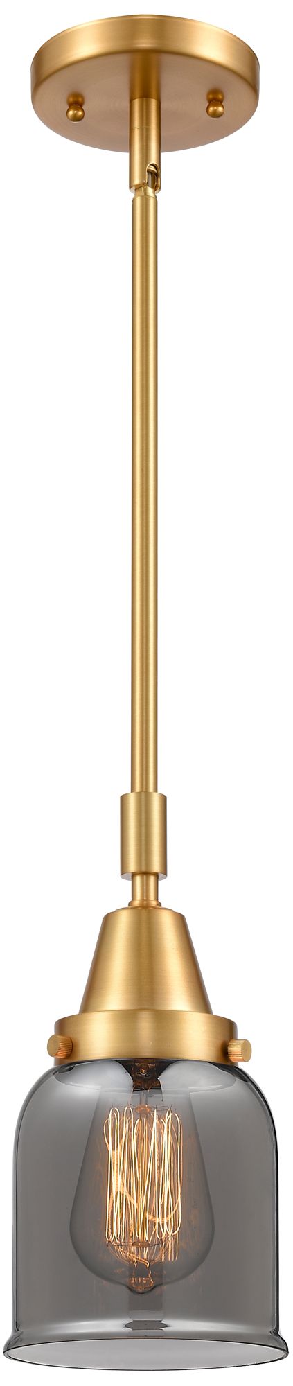 Caden Bell 5" Wide Satin Gold Stem Hung Mini Pendant w/ Plated Smoke S