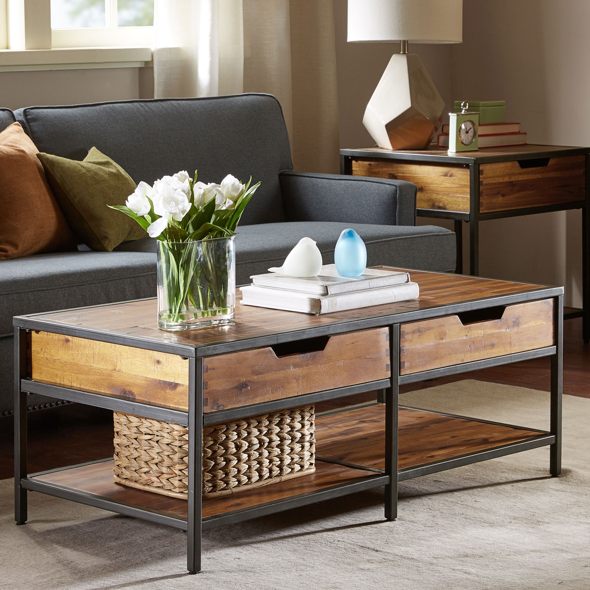 Ryker 44" Wide Natural Acacia Wood 2-Drawer Coffee Table