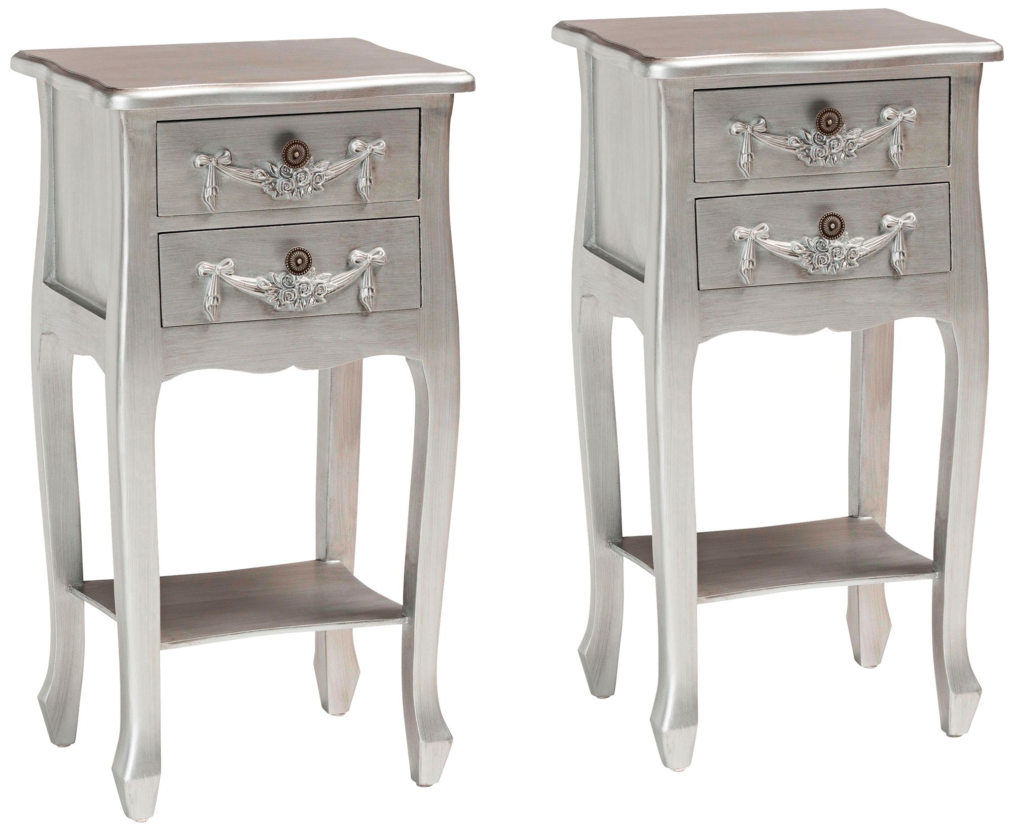 Eliya 15 3/4" Wide Brushed Silver Wood 2-Drawer Nightstands Set of 2
