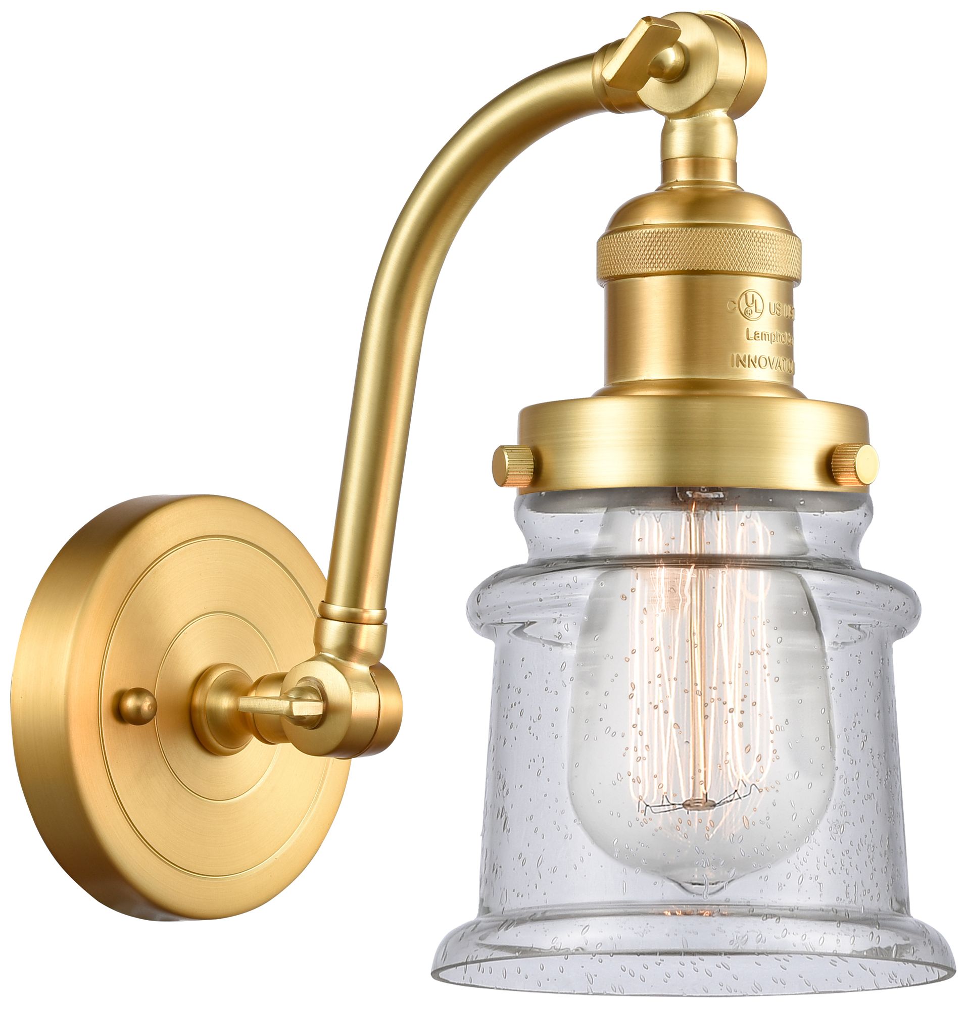 Small Small Canton 7" Satin Gold Sconce w/ Seedy Shade