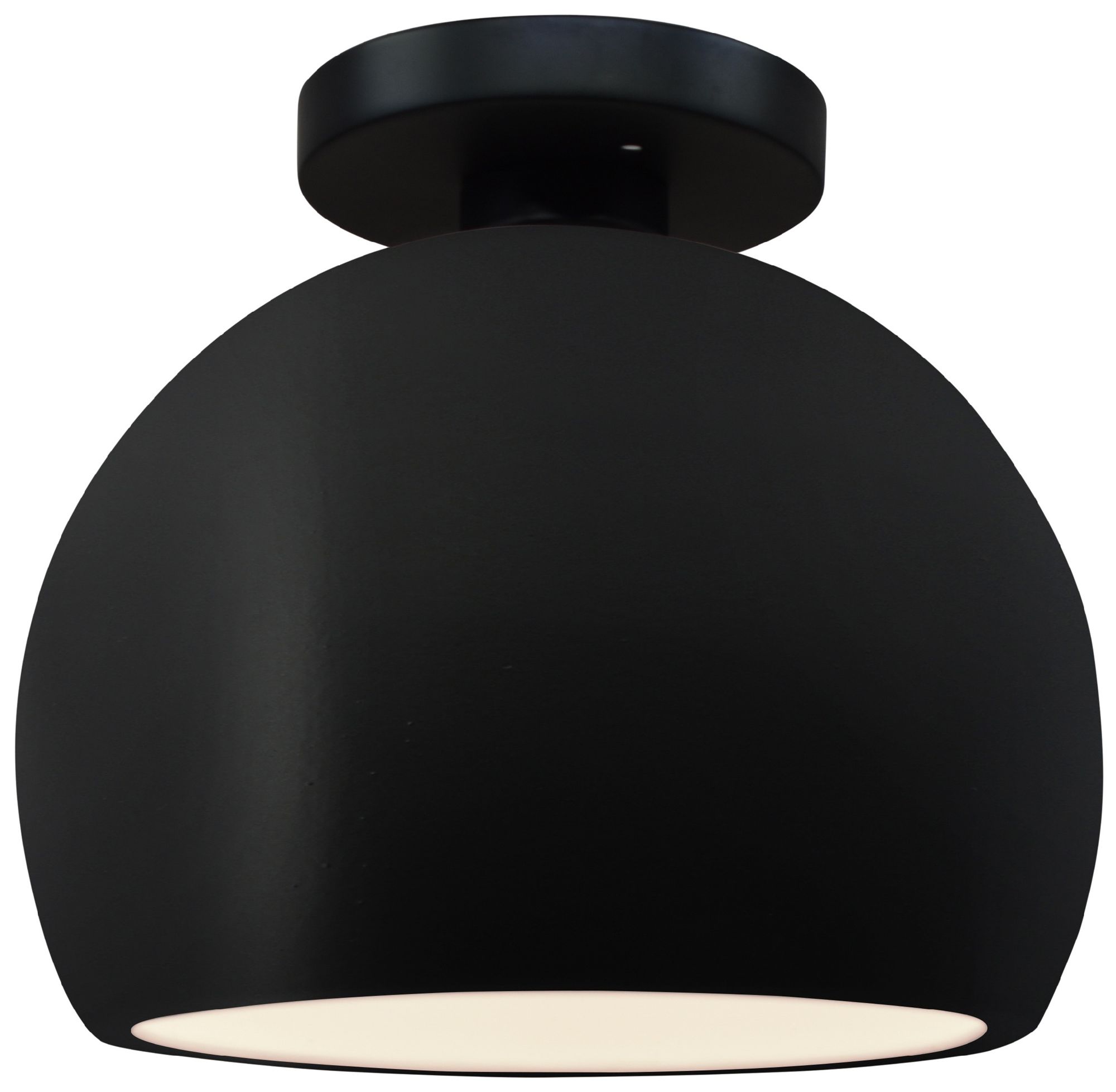 Radiance 7"W Carbon Frame Matte Black Metal Small Globe LED Semi.Flush
