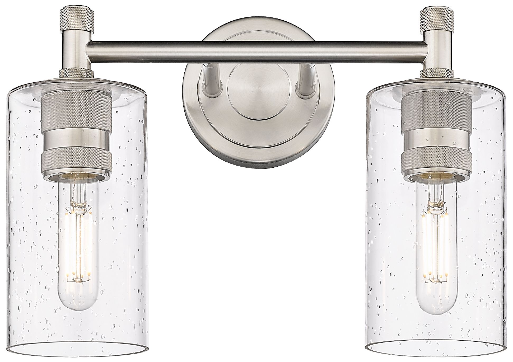 Crown Point 14" Wide 2 Light Satin Nickel Bath Light With Seedy Shade