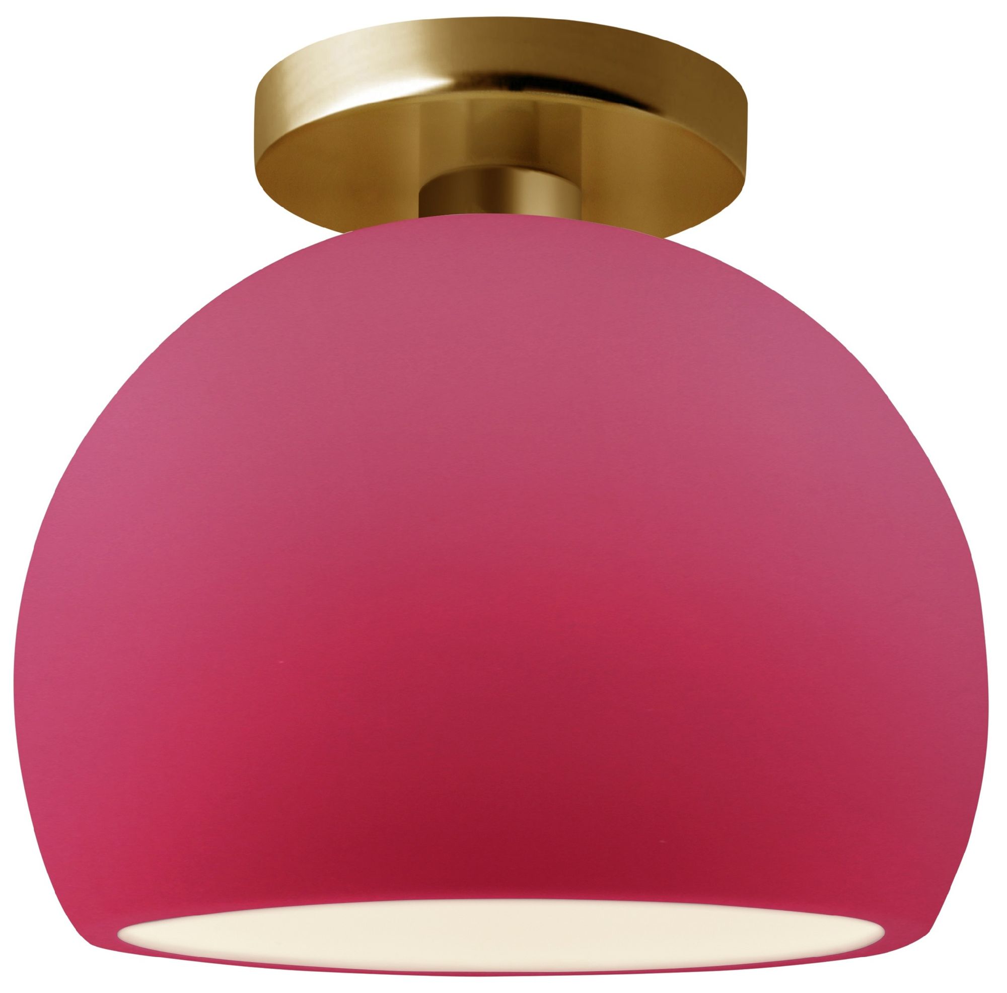 Radiance 7"W Cerise Frame Brushed Brass Metal Small Globe LED Semi.Flu
