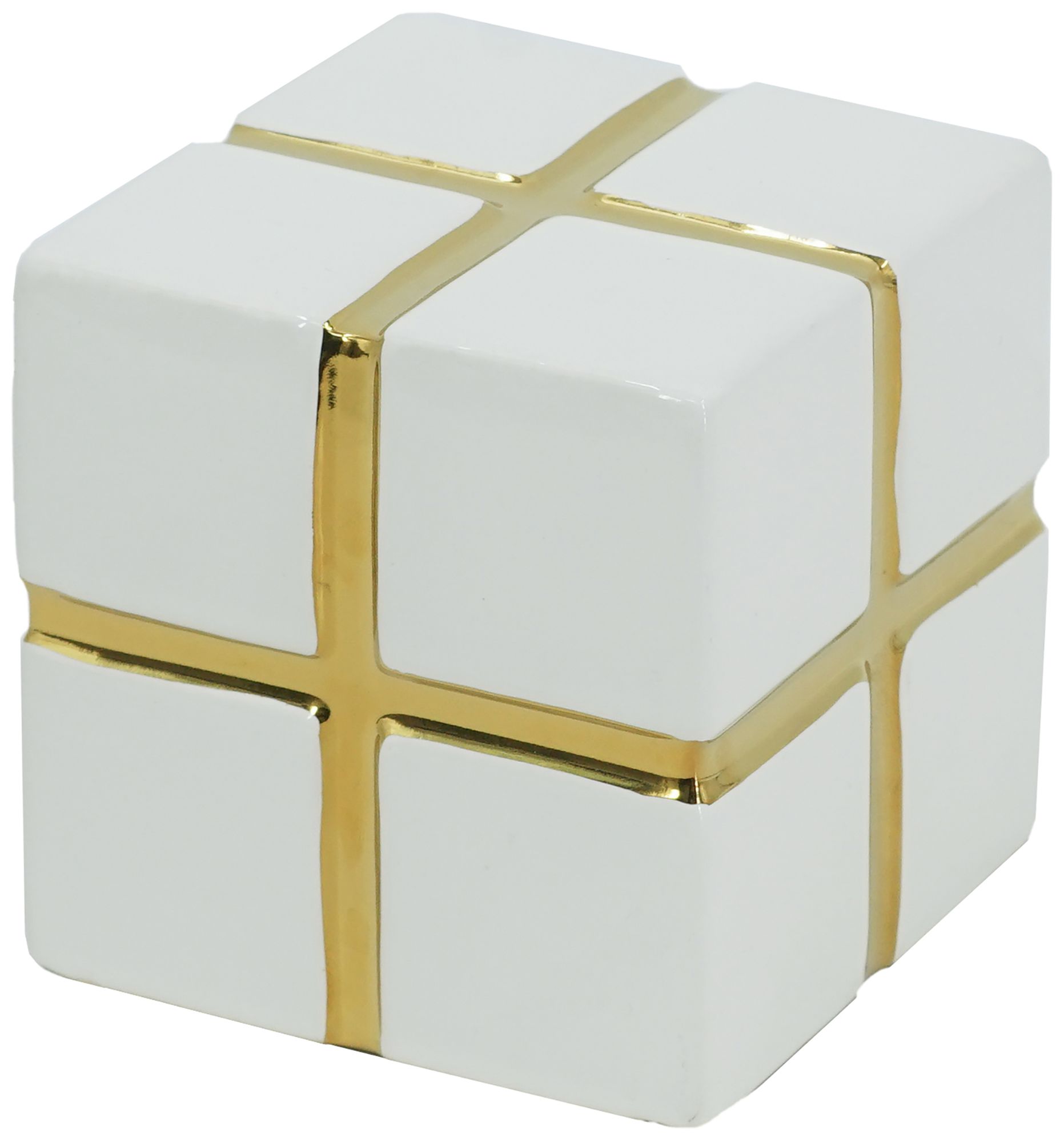 Decorative Ceramic Cube White/Gold 3.3x3.3x3.3"
