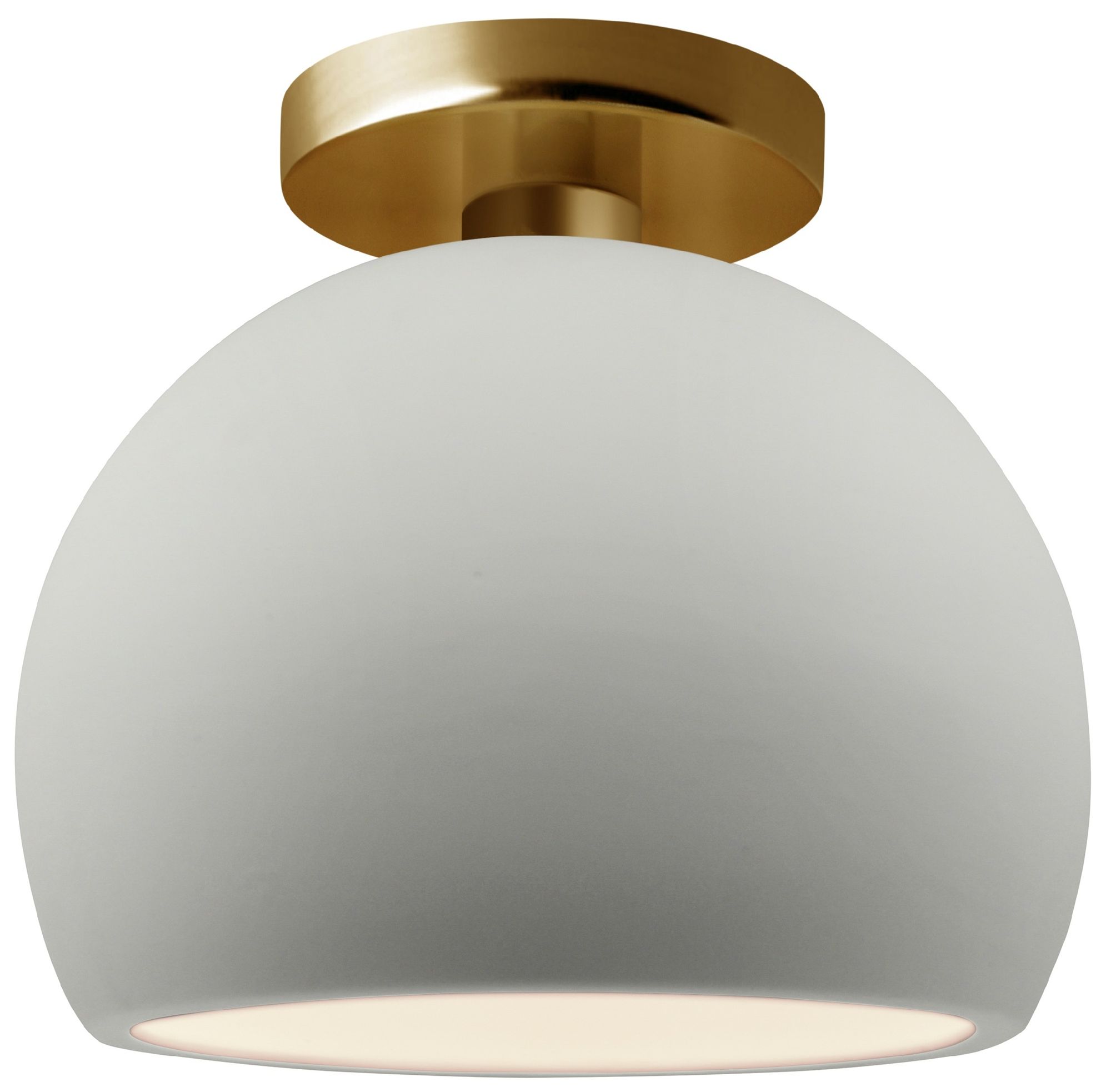 Radiance 7"W Matte White Frame Brushed Brass Small Globe LED Semi.Flus