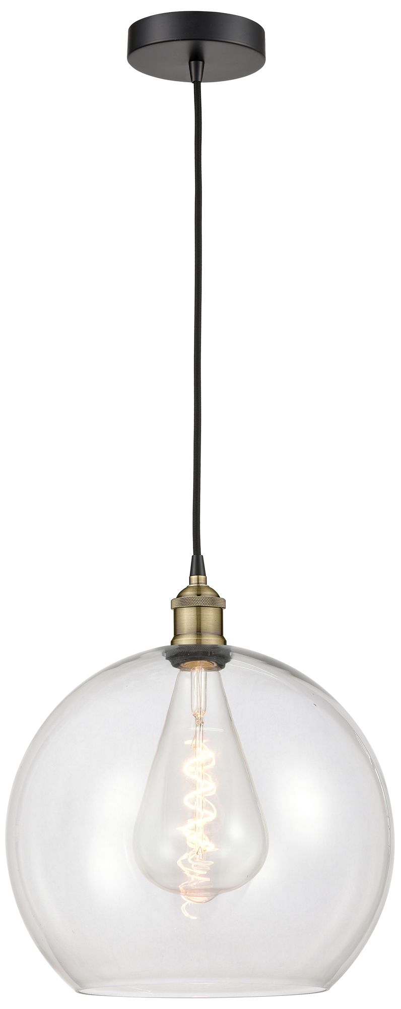 Athens 13.75" Wide Black Brass Corded Pendant With Clear Shade