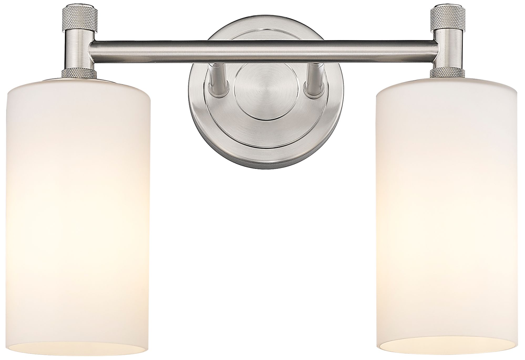 Crown Point 14" Wide 2 Light Satin Nickel Bath Light With White Shade