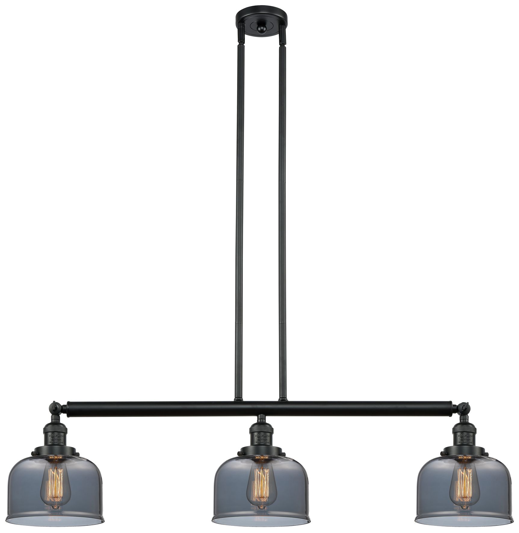 Bell 41" 3-Light Matte Black Stem Hung Island Light w/ Plated Smoke Sh