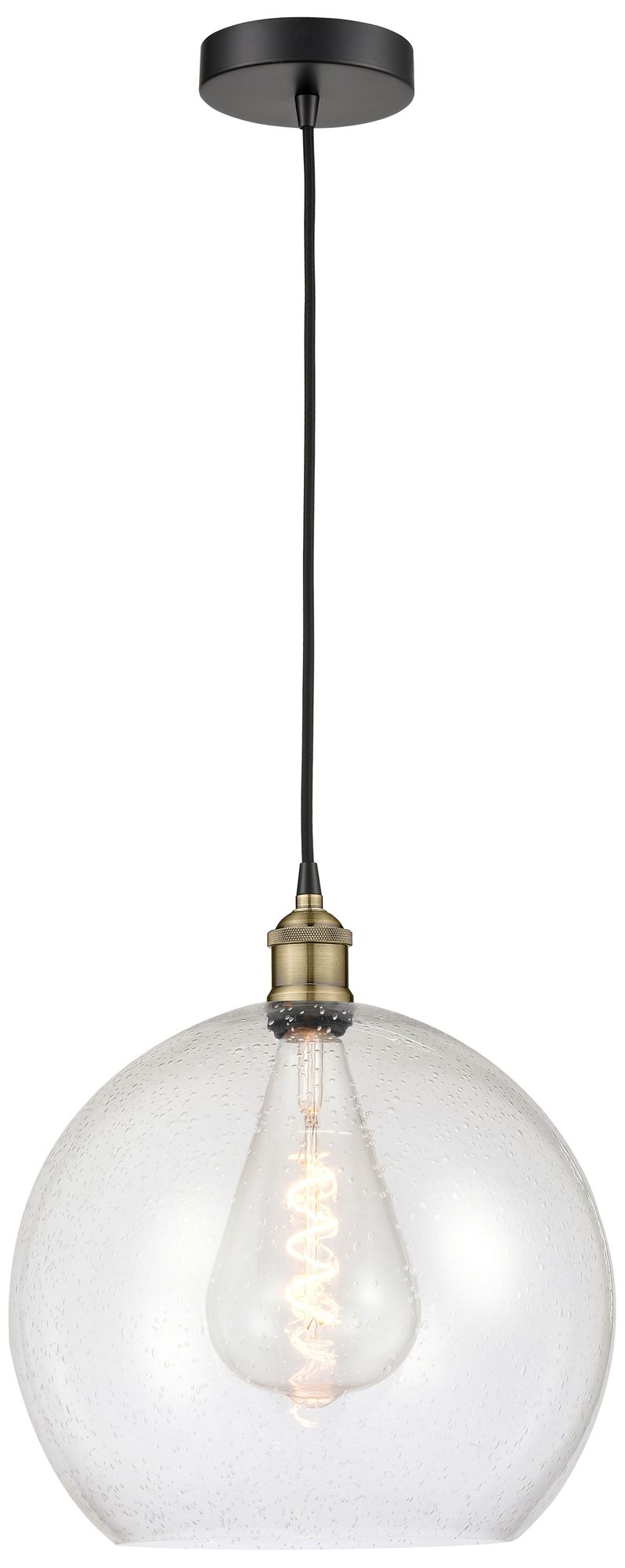 Athens 13.75" Wide Black Brass Corded Pendant With Seedy Shade